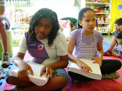 Encerro as atividades do ano com leitores muito especiais. Um projeto que começou em Porto Alegre, com a publicação do meu Tempo de Rosas, em Braille, e terminou em duas etapas no Centro de Prevenção à Cegueira, em Americana. Além do meu livro, eu trouxe mais sete títulos de literatura infantojuvenil.