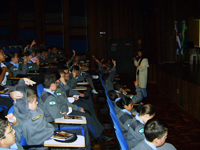 Os alunos das 5ªs e 6ªs saíram da palestras e foram escrever suas impressões sobre o nosso encontro. Eu, claro, fui fotografar depois.