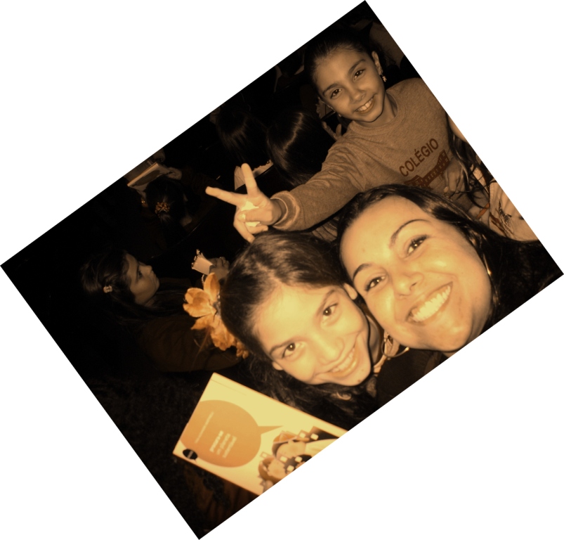 Cris, da Editora Scipione, entre as alunas. Grande fotógrafa!