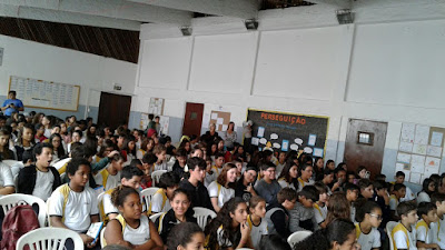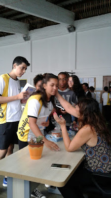 A primeira escola foi o Colégio Equipe de Viçosa, no dia 24 de abril. Puxa, que surpresa me fizeram! Teve parabéns e tudo pelos meus 20 anos de carreira. Trabalhos lindos, apresentação de teatro, entrevistas.