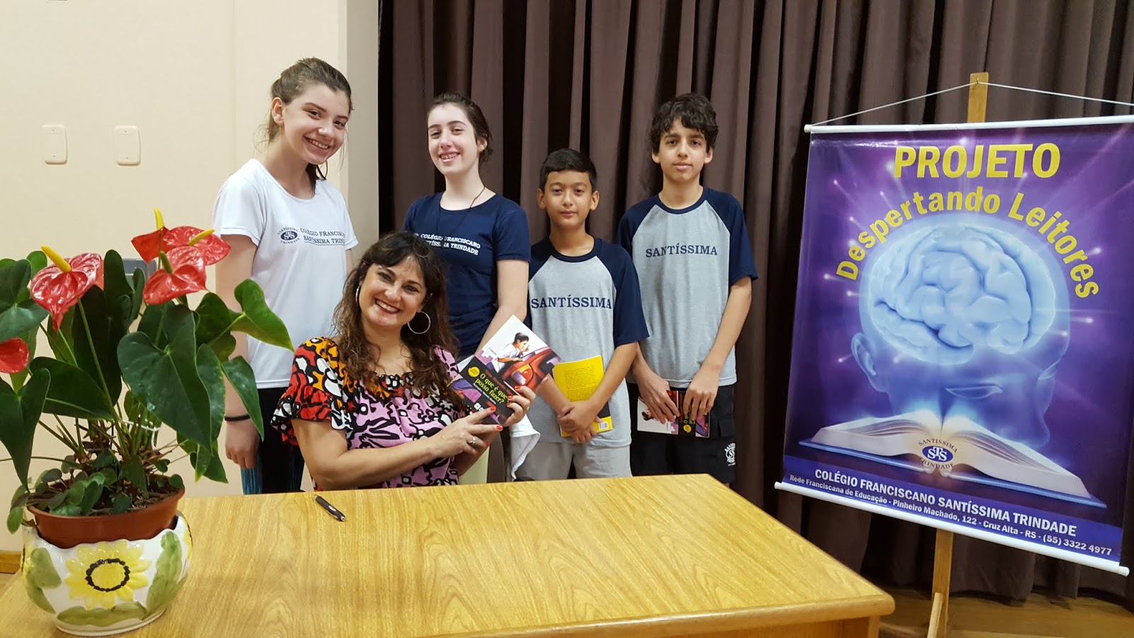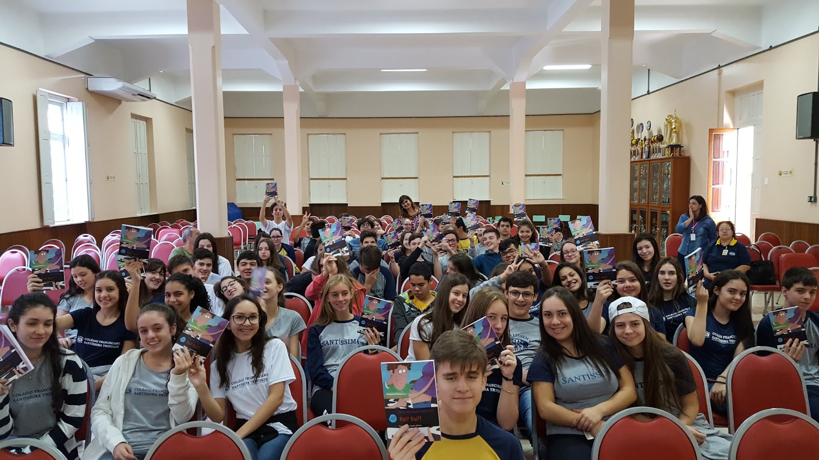 No dia 10 de maio, estive no Colégio Franciscano Santíssima Trindade, em Cruz Alta. A visita fez parte do projeto da escola: Autor Presente. Bacana demais! Todos os alunos do Ensino Fundamental II foram envolvidos no projeto, lendo e debatendo vários dos meus livros: