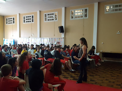 Estive no Colégio Sagrada Família de Forquilhinha, no dia 18 de outubro de 2019. Foi um espetáculo! Fiquei muito emocionada ao ver os alunos apresentando oito dos meus livros, da Somos Educação. Lindo demais! Vejam as nossas fotos!