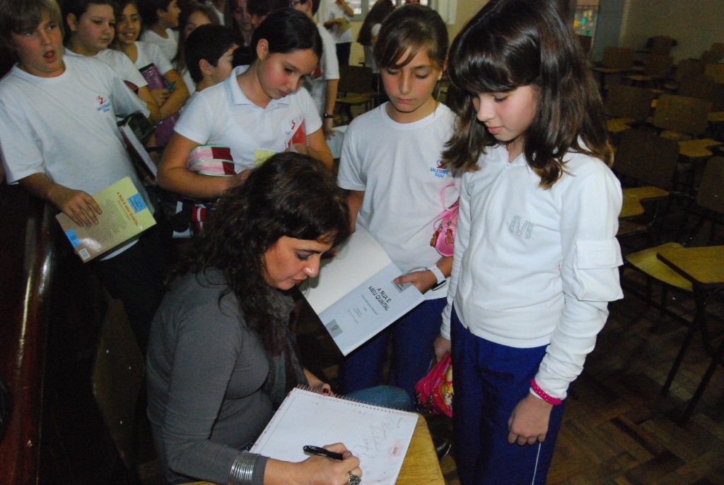 No final da palestra, mais surpresa: um poema-homenagem feito pelas oitavas séries e que está logo abaixo. Fiquei muito emocionada com todo esse carinho. Parabéns, alunos, pelos lindos trabalhos e obrigada mais uma vez!