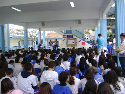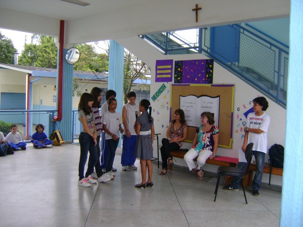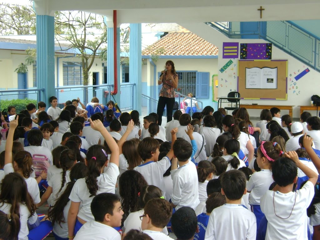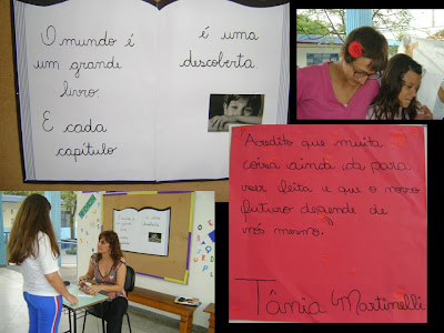 Ontem, 15 de outubro, Dia dos Professores, participei da Feira de Livros do Colégio Walter Fortunato, em São José dos Campos. Além dos autógrafos e bate-papo com os alunos, assisti a uma peça de teatro preparada pelos 7ºs anos e pela profª Miriam, de Orientação Educacional, baseada no meu livro Com o coração do outro lado do mundo. Amei!