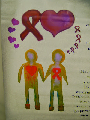 O livro ao lado foi um presente seu. Publicado pelo Ministério da Saúde, ele traz relatos de experiências de jovens que convivem com o vírus HIV. Ele foi pensado para dialogar com os jovens sobre prevenção às DST, aids e hepatites virais.