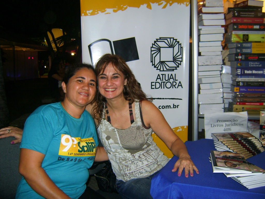 A coordenadora Maria Olinda e a professora Rosilane, do Colégio Diocesano. Esses colégios trabalharão com meu livro Perseguição, da Editora Saraiva.